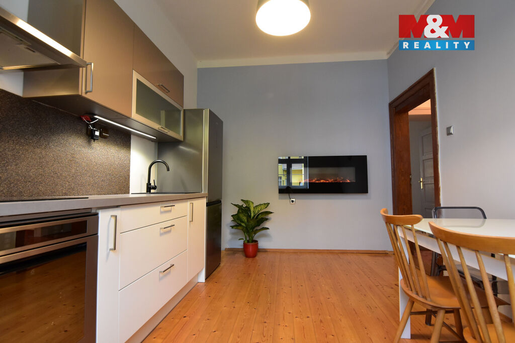 Od 1.1.2026 nabízíme pronájem bytu po rekonstrukci v centru Ústí n. Labem. Byt se nachází v opraveném městském domě přímo naproti UJEP. V bytě je praktická předsíň, ze které je vstup do koupelny s oddělenou toaletou, kuchyně s jídelním stolem a velkého obývacího pokoje. Do ložnice projdete z obývacího pokoje. Místnosti jsou zařízené nábytkem, jak vidíte na fotografiích, navíc je zde pračka, sušička, šatní skříň a botník. Celý byt je světlý díky vysokým oknům a příjemnou atmosféru vytváří vlastní zařízení a bytové doplňky. V domě se topí plynem, v kuchyni je navíc závěsný elektrický krb. Kuchyň je kompletně zařízená včetně základního nádobí.
