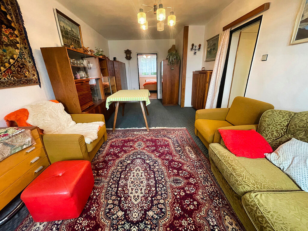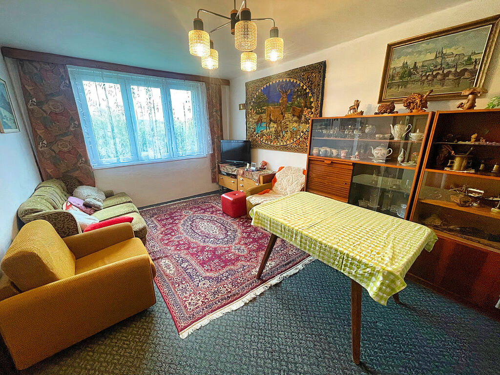 Podlahová plocha bytu činí 71,4 m², přičemž všechny tři pokoje mají zachovalé dřevěné parkety. Byt je ve velmi udržovaném původním stavu, nabízí bydlení s etážovým topením na tuhá paliva (kotlem v bytě), který ohřívá radiátory. K bytu patří tři prostorné sklepy. V koupelně se nachází elektrický bojler. Díky nízkým provozním nákladům je tento byt ideální volbou pro rodinu i jako investiční příležitost.