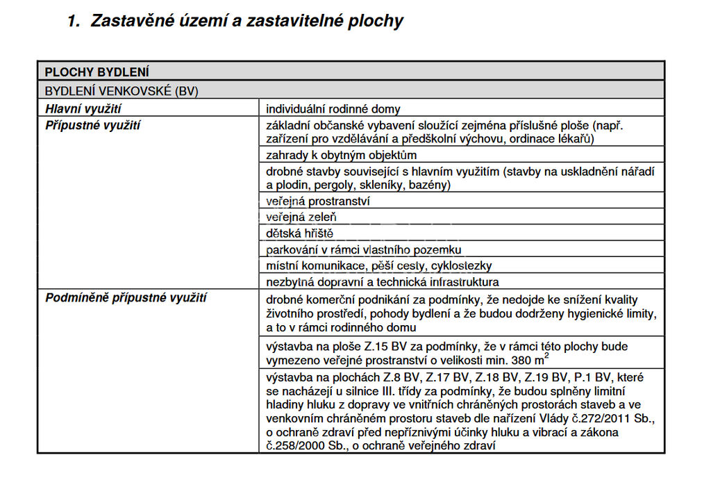 - maximální výška zástavby: 1 nadzemní podlaží + obytné podkroví