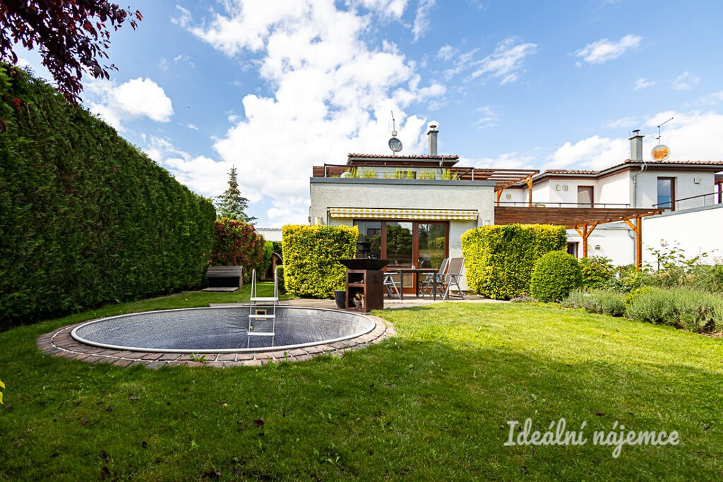 K dlouhodobému pronájmu nabízíme plně zařízený dvoupodlažní rodinný dům dispozice 4+kk o rozloze 131 m2 na prostorném pozemku se zahradou v klidné rezidenční lokalitě středočeských Měšic. Přízemí vévodí rozlehlý obývací pokoj výměry přes 33 m2 s dobře vybaveným částečně odděleným kuchyňským koutem s přírodním osvětlením. Na každém podlaží je jedna ložnice a koupelna s toaletou, v horním patře je pracovna s přístupem na terasu. Vytápění domu a ohřev vody je realizován plynovým kotlem. Kromě zahrady samotné je k užívání k dispozici i bazén a sauna. Součástí měsíčních záloh jsou již energie a vysokorychlostní internet.