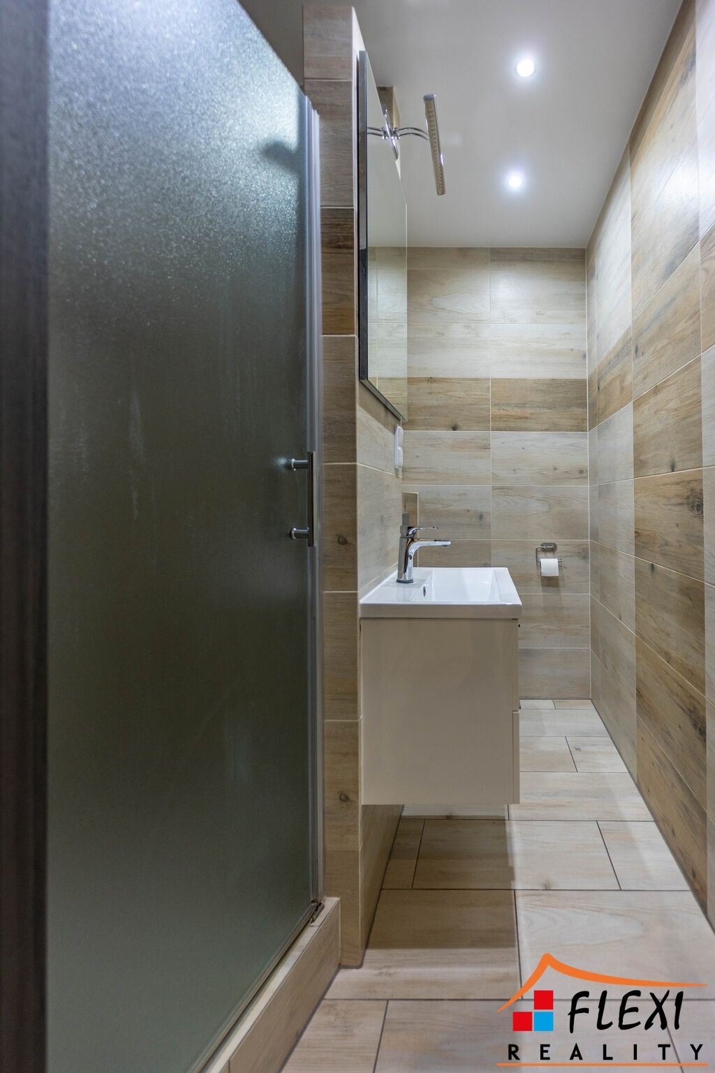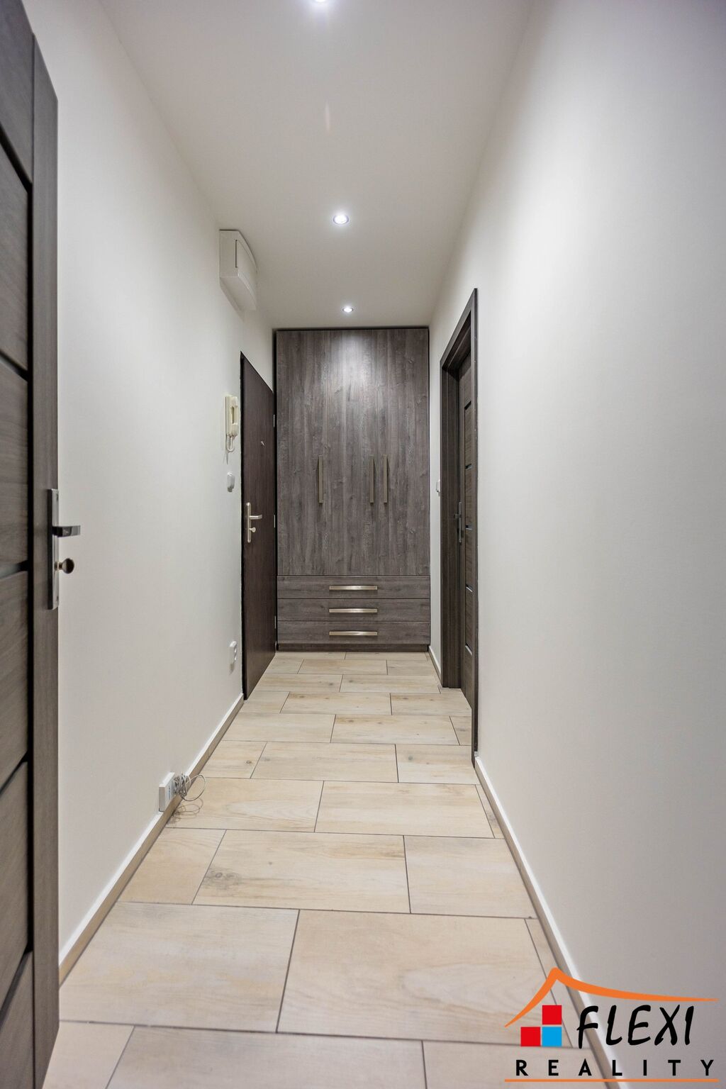 Na podlaze je v celém bytě položena dlažba, nové stropní LED osvětlení.