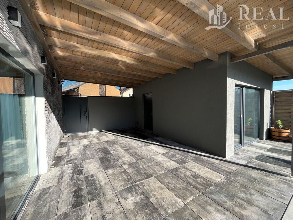 Součástí prodeje je pozemek o velikosti 603 m, garáž, venkovní parkování a prostorný sklep (100 m). Dům je kompletně vybavený, včetně vestavného nábytku, klimatizace, krbu, chytrého osvětlení a kamerového systému.