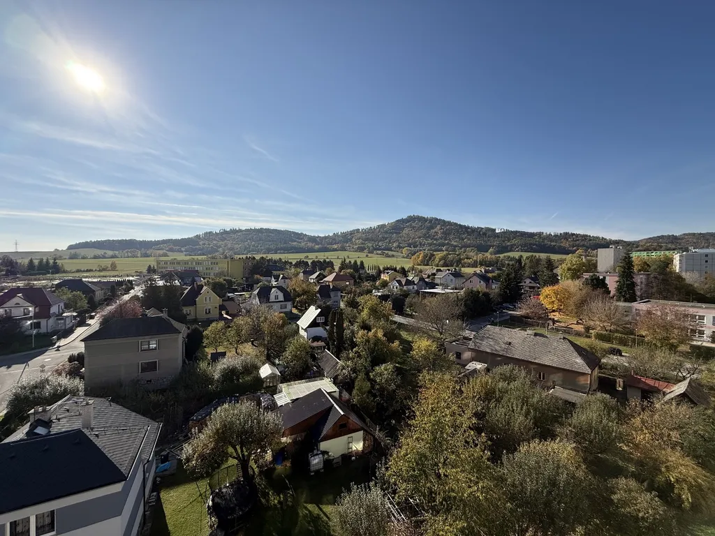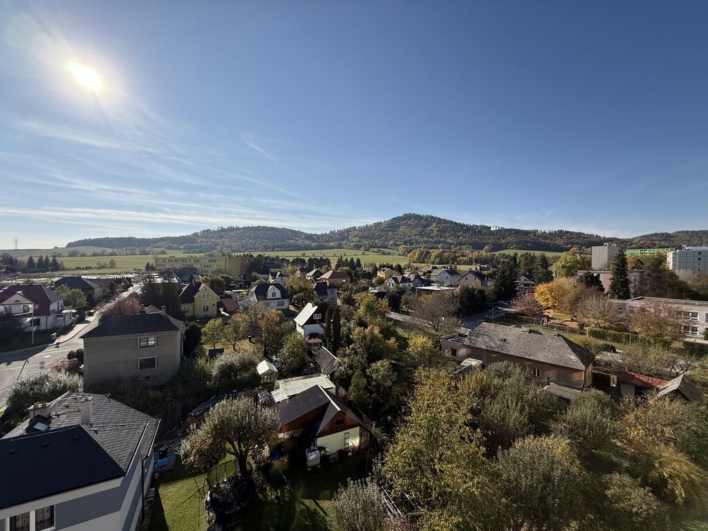 Byt je plně vybavený – součástí jsou spotřebiče, skříně, ostatní nábytek včetně TV i vybavení kuchyně. Díky své orientaci nabízí krásný výhled na město a okolní krajinu. Dům je udržovaný, v klidné lokalitě s dobrou dostupností do centra a veškerou občanskou vybaveností v dosahu. Dispozice: vstupní chodba, kuchyň s jídelním koutkem, obývací pokoj s přístupem na balkon, ložnice, koupelna.