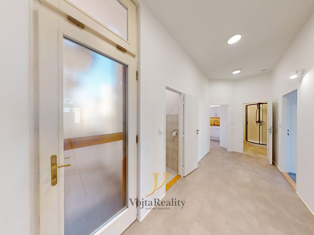 Byt nabízí tři samostatné pokoje, které zajišťují dostatek soukromí pro všechny členy domácnosti. Kuchyně je kompletně vybavena moderními spotřebiči – lednicí, mrazákem, myčkou, sklokeramickou varnou deskou, troubou a nechybí ani varná konvice. Na kuchyni navazují dvě menší místnosti, které se skvěle hodí jako úložný prostor nebo domácí pracovna. K bytu náleží lodžie o velikosti 2 m² orientovaná do klidného vnitrobloku a k dispozici je také půda.