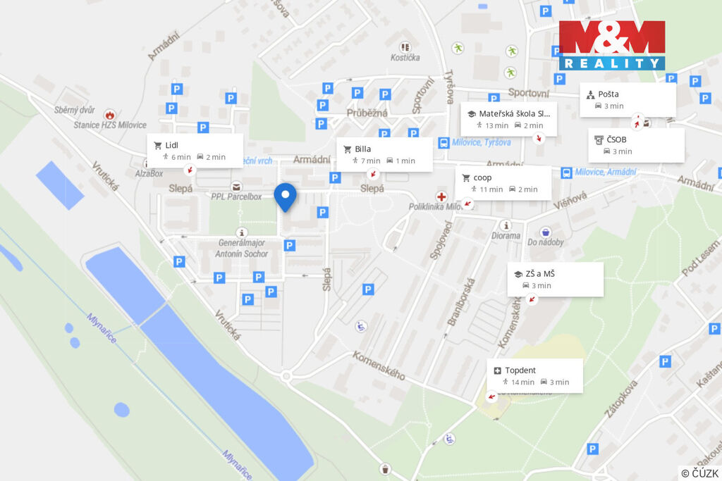 Nabízíme vám k pronájmu byt o dispozici 2+kk s balkonem o podlahové ploše 37 m², umístěný v klidné části Milovic - Mladá, v ulici Slepá.