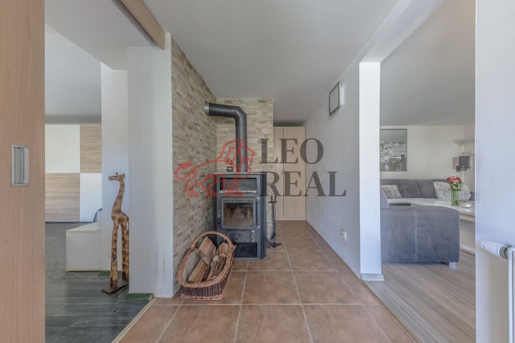 Současná dispozice domu je 3+1. Podkroví je vhodné k vestavbě dalších pokojů. Vytápění domu zajištují krbová kamna s výměníkem + elektrokotel, ohřev vody pak bojler.
