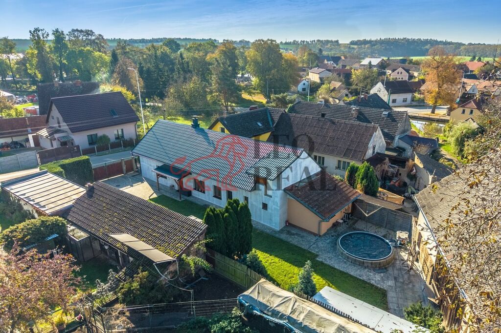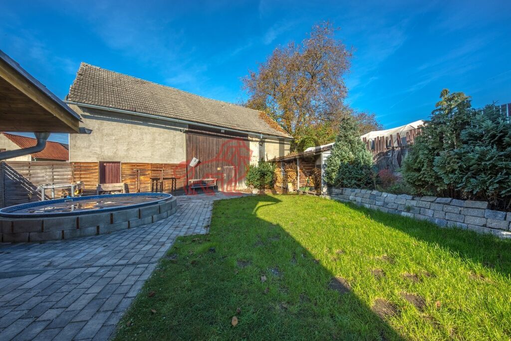 Na zahradě najdete několik klidových zón; pergolu, bazén, parkování aut na pozemku, u vjezdových vrat je příprava na elektropohon. Zděná stodola nabízí mnoho využití.