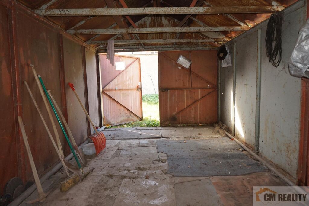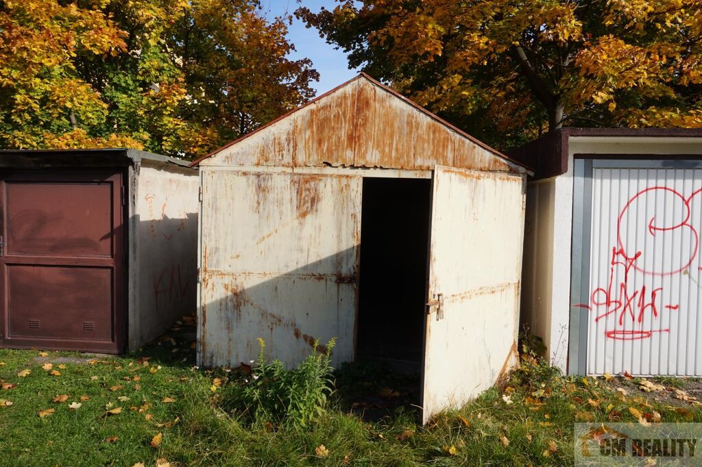Jedná se o plechovou garáž na vlastním pozemku. Výměra pozemku garáže je 18 m2. Ke garáži náleží podíl na příjezdové cestě ke garážím. Garáž je celoplechová v původním stavu. Na pozemku si nový vlastník může postavit novou montovanou garáž, ať již plechovou, plechovou s omítkou či betonovou.