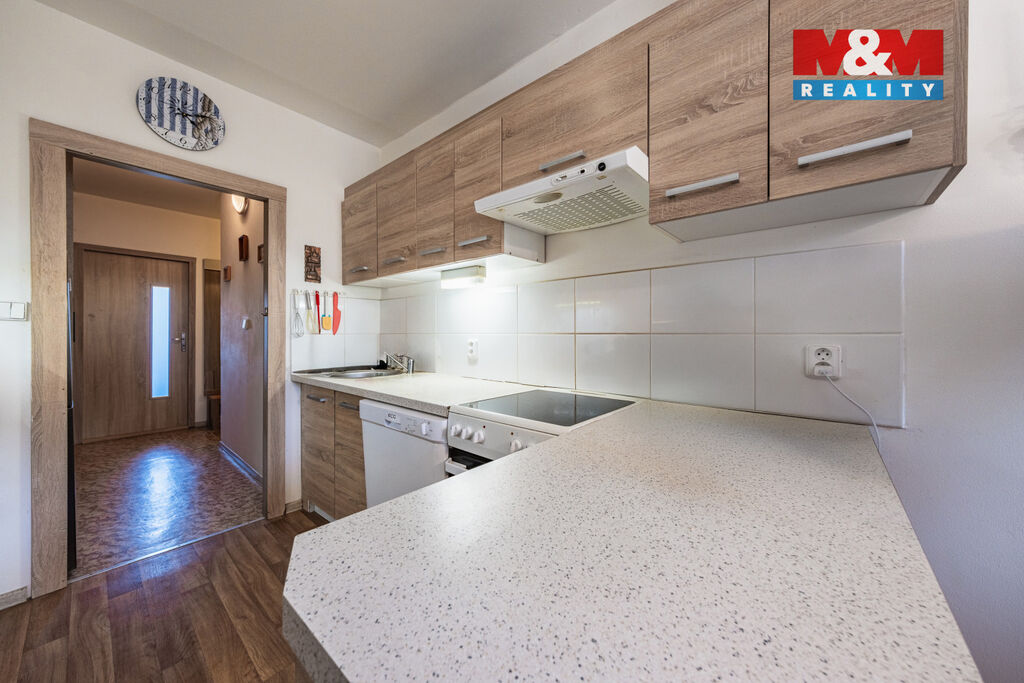 Byt se nachází v 1. NP a jeho dispozice nabízí prostornou obývací část s přímým vstupem na lodžii s bezpečnými mřížemi, dále plně vybavený kuchyňský kout s jídelnou, dva neprůchozí pokoje, koupelna s vanou, samostatná toaleta a prostorná chodba s vestavnými skříněmi.