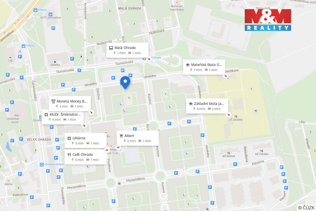 Tato lokalita je velmi oblíbená a vyhledávaná pro okolní zeleň, nabízí spousty sportovišť pro aktivní využití, kompletní občanskou vybavenost a široký výběr služeb na dosah ruky. Výborná dopravní obslužnost, stanice metra je v pěší vzdálenosti. Parkování je možné přímo před domem. Pro více informací nás neváhejte kontaktovat.