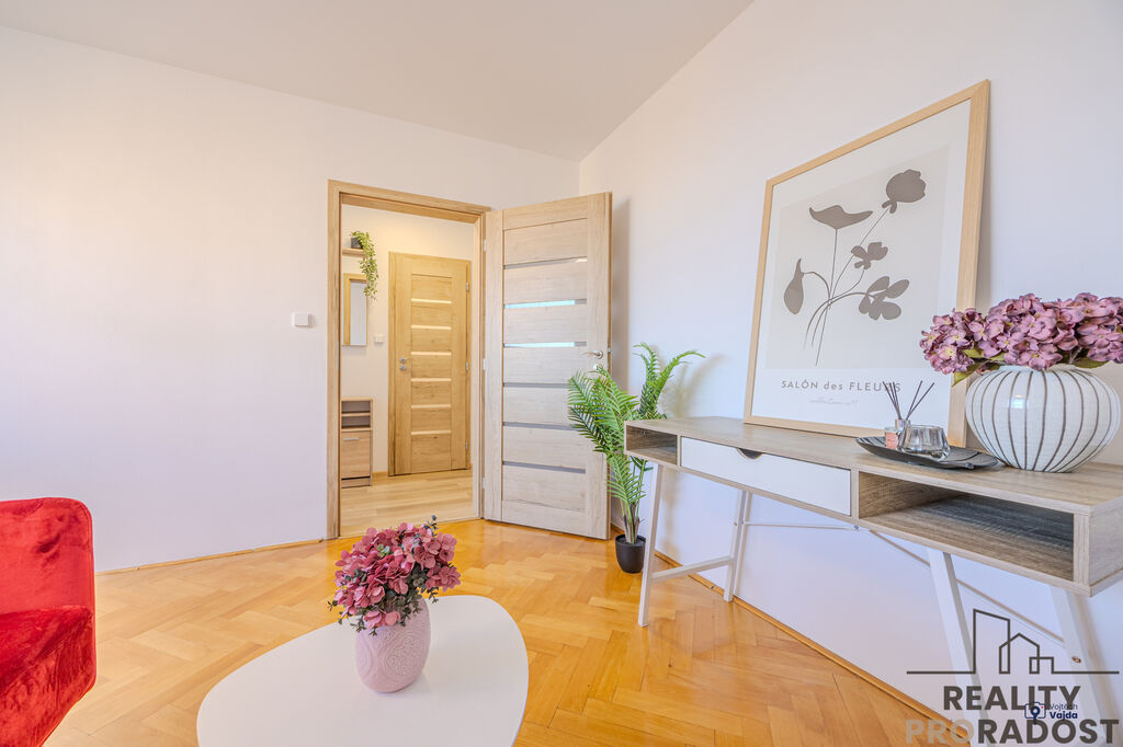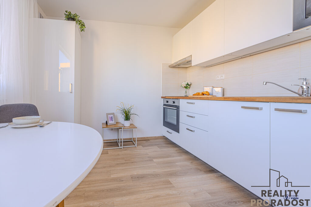 ° byt je již po rekonstrukci, takže se stačí nastěhovat ( elektřina v mědi, nová kuchyňská linka s indukční varnou deskou a digestoří, horkovzdušnou troubou a zabudovanou mikrovlnkou )