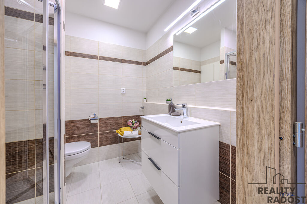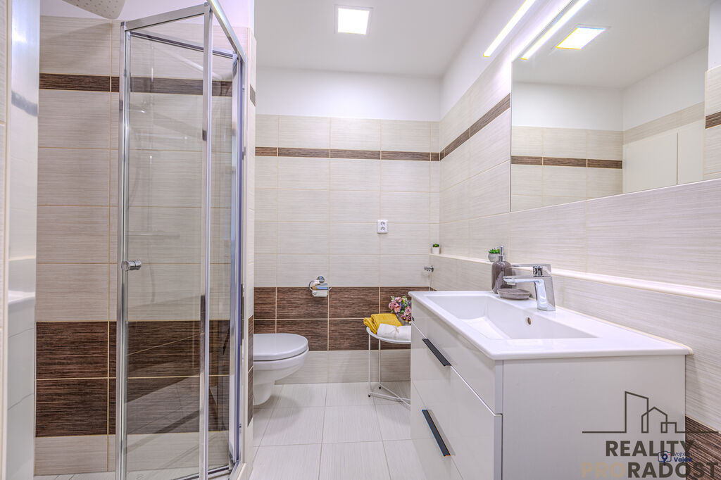 ° prostorná koupelna s velkým sprchovacím koutem