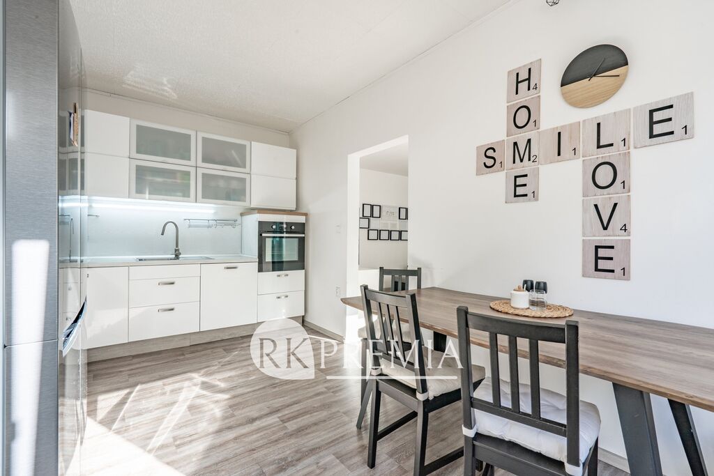 V roce 2021 prošel kompletní rekonstrukcí – včetně rozvodů vody, odpadu a elektřiny. Kuchyňská linka v nadčasové bílé barvě je vybavena vestavěnými spotřebiči. V ložnici a předsíni zůstávají praktické skříně, které vám usnadní stěhování.