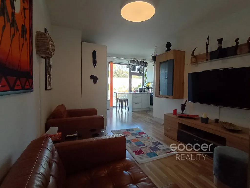 Z bytu je nádherný výhled, celkový dojem umocňuje promyšlené řešení interiéru a vysoký standard vybavení. Obyvatelé mají k dispozici i společnou vnitřní zahradu s terasou, ideální pro večerní posezení či grilování. Celý areál působí velmi útulně a bezpečně – s minimem pronajímaných bytů a příjemnou komunitní atmosférou.