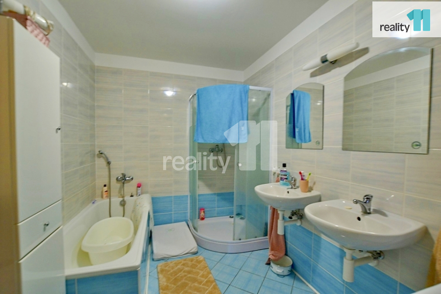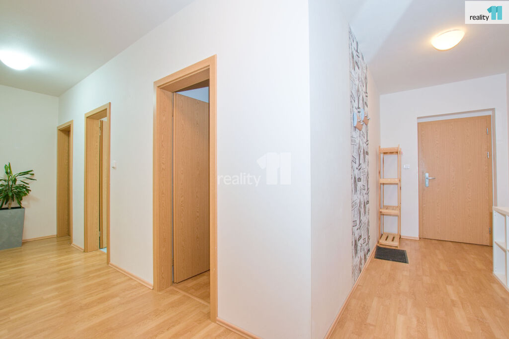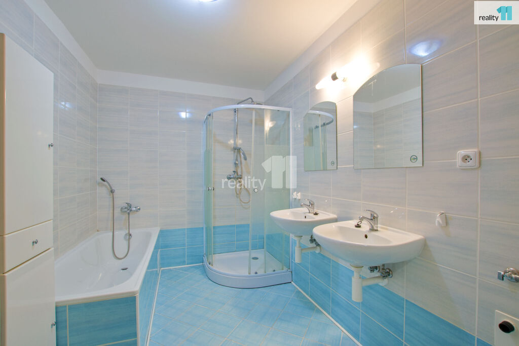Dispozice: prostorný obývací pokoj s balkonem, dvě samostatné ložnice, kuchyň s plně vybavenou linkou a spotřebiči, koupelna s vanou i sprchovým koutem, dvěma umyvadly, samostatná toaleta, šatna a vestavěné skříně na chodbě.