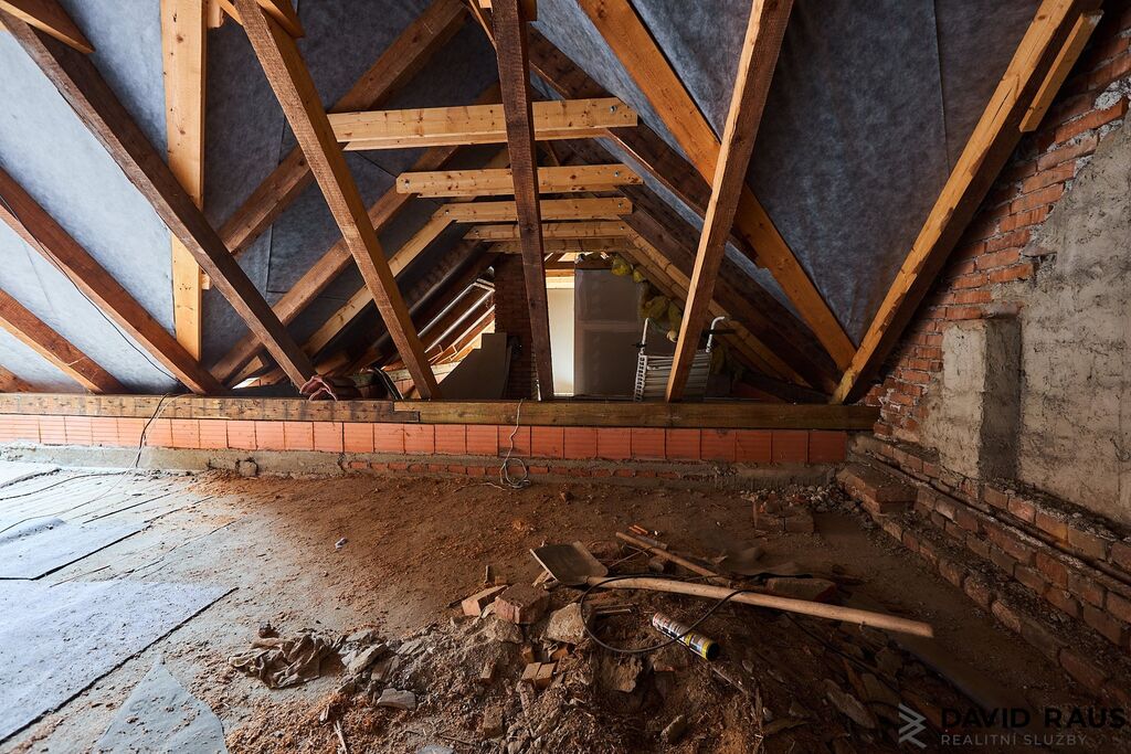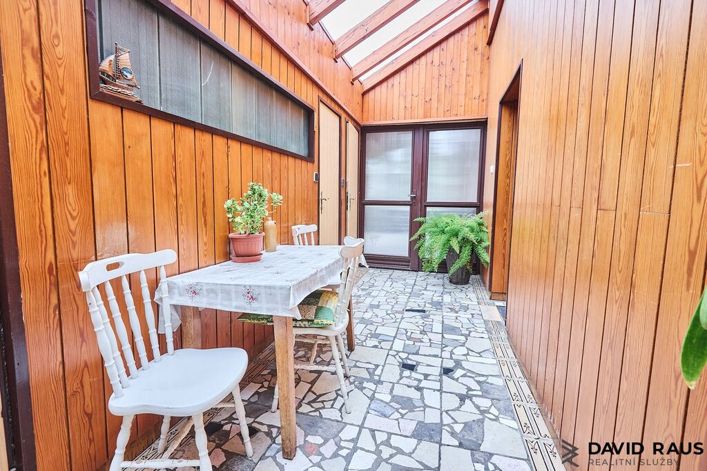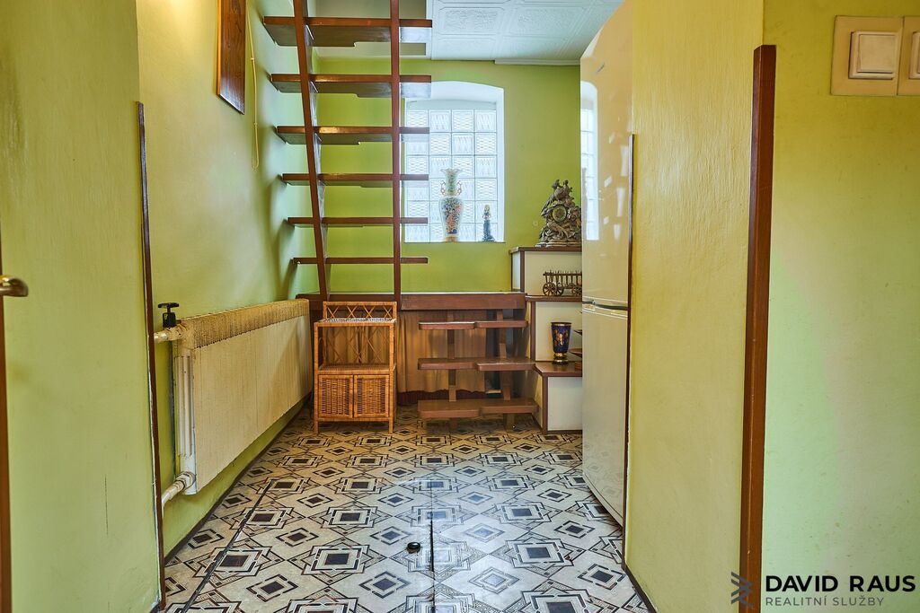 Dispozice domu: Hlavními vraty se vstupuje do velkého zastřešeného průjezdu, který v současnosti slouží jako prostorná hala. Tento prostor je s domem propojen a nabízí řadu možností využití – může zůstat praktickým místem pro parkování, ale díky své velikosti se přímo nabízí i jako rozšíření obytné části, zádveří nebo dílna. Z průjezdu je přístup do několika dalších místností – nachází se zde samostatné WC, koupelna, komora, menší dílna a také vstup na zahradu. Průchodem dále se vstupuje do obytné části domu, kde na chodbu navazuje kuchyně umístěná po pravé straně. Naproti vstupu do kuchyně je ložnice. Kuchyně dále volně přechází do obývacího pokoje, který působí jako přirozené centrum domu. Z chodby vede dřevěné schodiště na půdu, kde lze vybudovat další obytné prostory. Ve sklepě se nachází technické zázemí domu, včetně přípojky vody a plynového kotle.