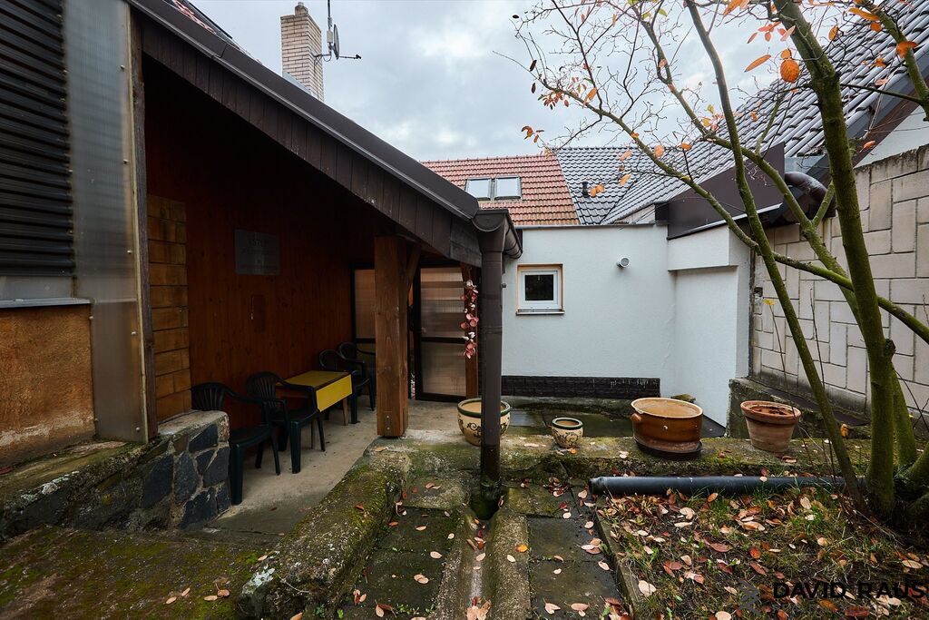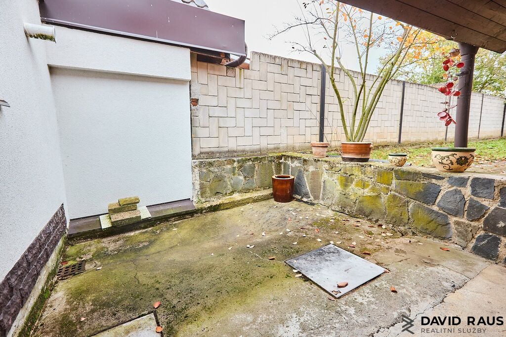 Za domem se rozprostírá příjemná, částečně zastřešená zahrada, která poskytuje místo pro odpočinek i posezení v horším počasí. V zadní části stojí menší zahradní domek určený pro uskladnění nářadí a zahradního vybavení. Zahradu zpestřuje plodící fíkovník.