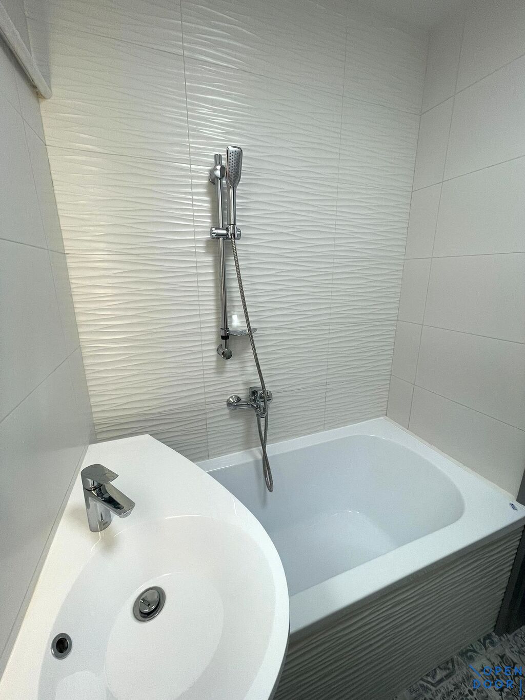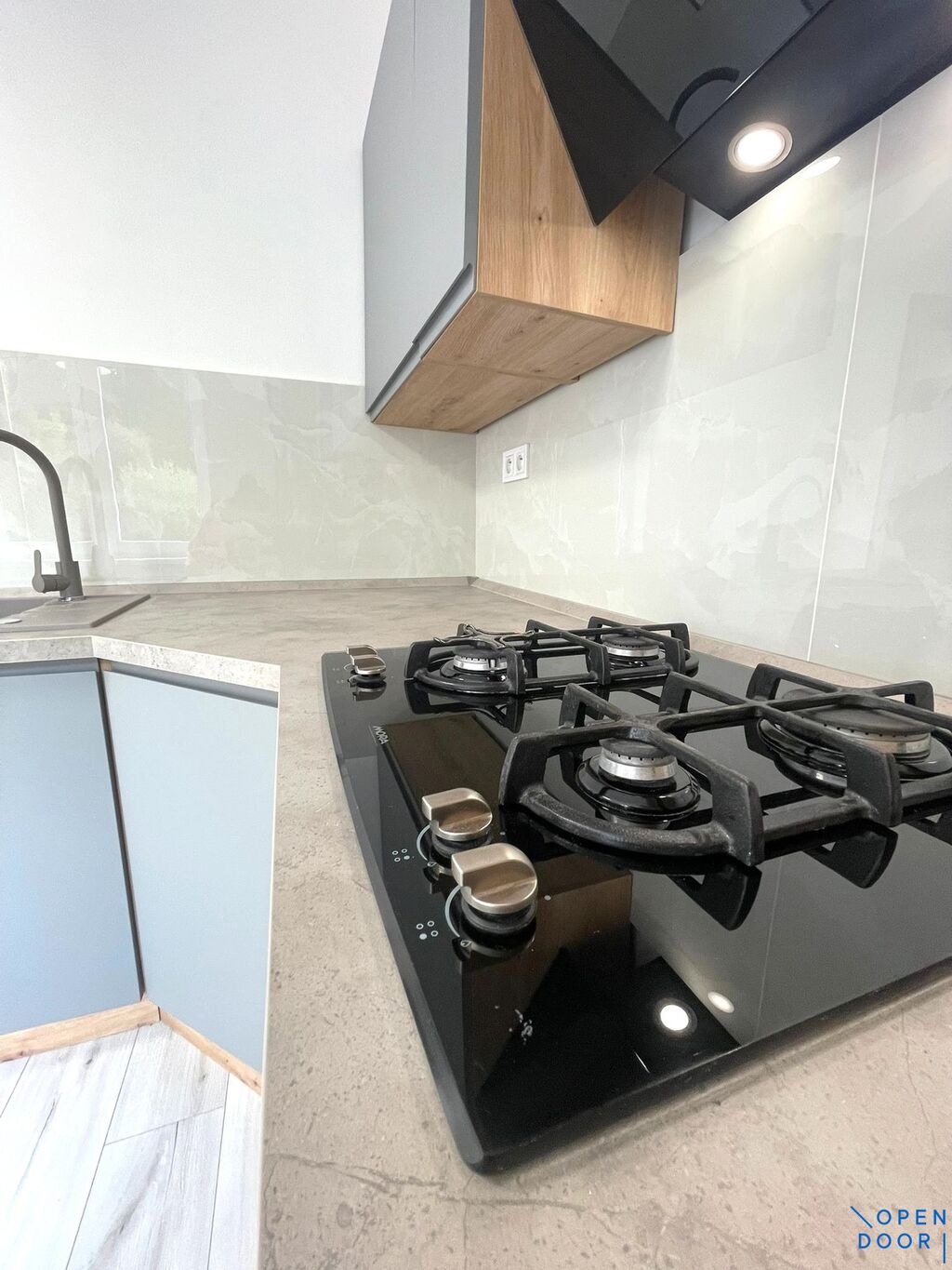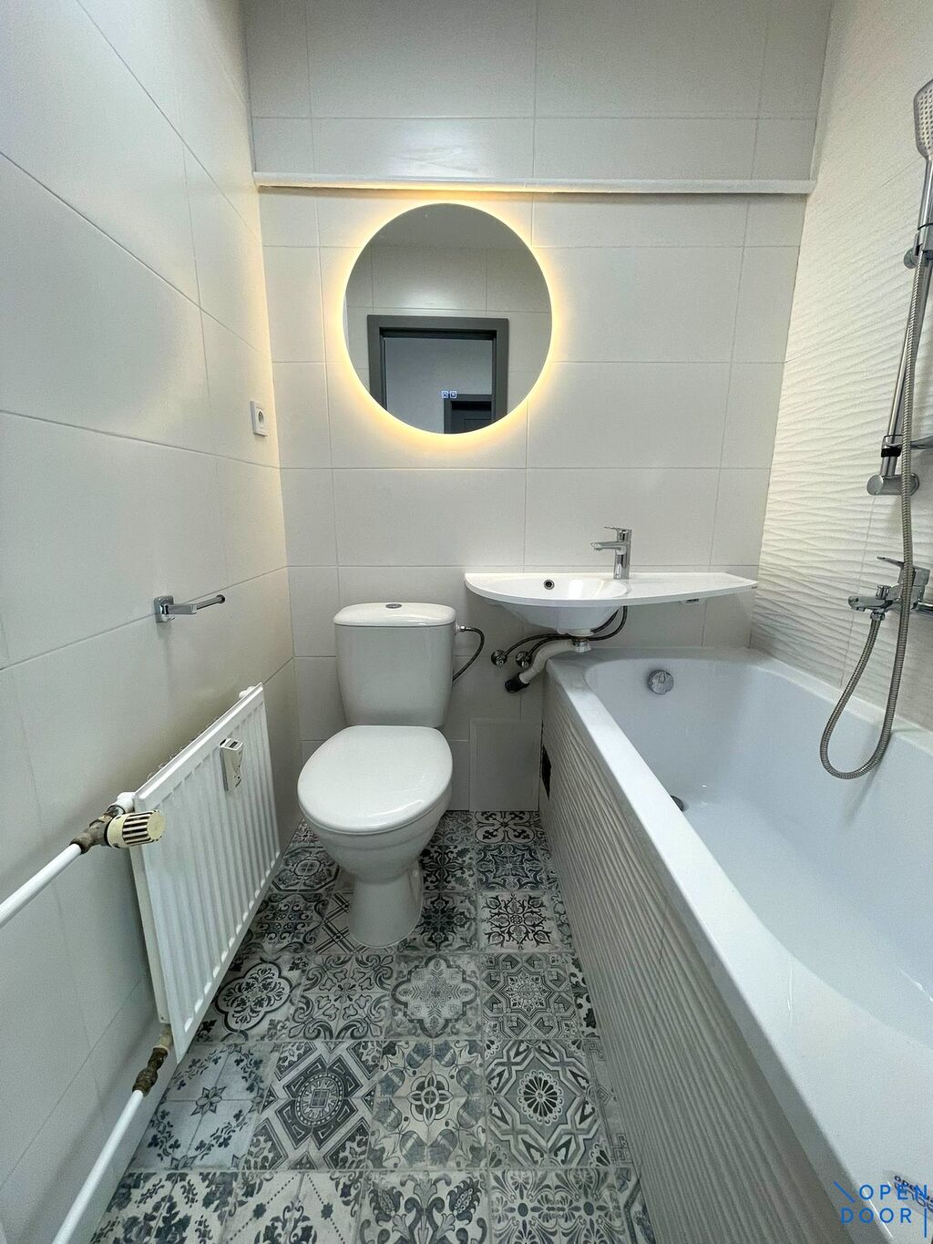 Byt prošel kompletní rekonstrukcí (podlahy, plastová okna, interiérové dveře vč. obložek, nové rozvody elektřiny, vody a odpadů) a je připraven k okamžitému nastěhování. Kuchyňská linka ve tvaru "L" je provedena v moderní šedé barvě a je vybavena vestavěnou troubou, plynovou varnou deskou, komínovou digestoří a pračkou. Koupelna je spojena s toaletou a najdete v ní vanu, umyvadlo s praktickou odkládací plochou a elegantní LED podsvícené zrcadlo se senzorem proti mlžení. I koupelna je nově a vkusně zrekonstruována.