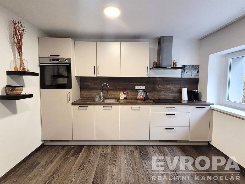 Pronajímá se kompletně zařízený a zařízený (Kuchyňská linka s vestavěnými spotřebiči, jídelní stůl, židle, manželská postel, konferenční stolek, TV)
