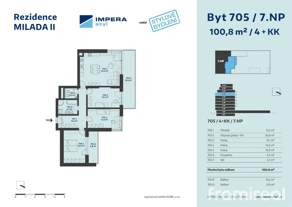 Byt zaujme svou velkorysou dispozicí, kvalitním zpracováním a klidným výhledem do vnitrobloku.