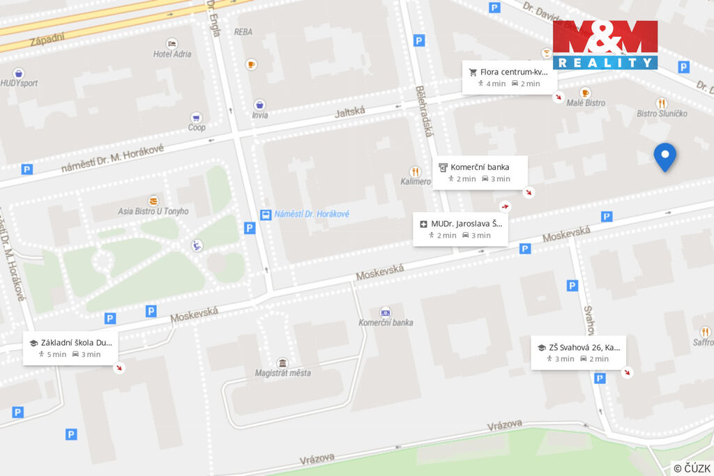 Byt se nachází v udržovaném domě v atraktivní lokalitě s veškerou občanskou vybaveností v docházkové vzdálenosti - MHD, restaurace, obchody, kavárny, les i lázeňská zóna.