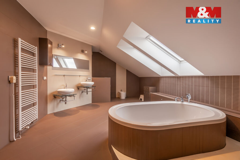 Představujeme vám exkluzivní rodinný dům, který se tyčí na kopci v klidné a vyhledávané lokalitě Čerčan, odkud se otevírá nádherný panoramatický výhled do okolí. Dům s dispozicí 5+1 je navržen s důrazem na prostornost a soukromí. Dominantou přízemí je slunný obývací pokoj s jídelnou a kuchyní. Dále je zde ložnice, pokoj pro hosty, koupelna s masážní sprchou a WC. V patře spojuje otevřená galerie dvě velkorysé ložnice. Velká koupelna s vanou, dvěma umyvadly, bidetem a WC. V suterénu na vás čeká infrasauna a prostorný herní prostor. Dále je zde technická místnost (strojovna) a praktická komora. Hlavním zdrojem vytápění je tepelné čerpadlo vzduch-voda. Vrtaná studna (55 m), napojení na veřejný vodovod a kanalizaci je samozřejmostí. Největším benefitem je prostorná terasa s dechberoucím výhledem, ideální pro letní grilování a posezení, a vyhřívaným bazénem s protiproudem. Komfortní parkování zajišťuje dvougaráž. Okrasná zahrada je dílem zahradníka. Přijďte se přesvědčit osobně.