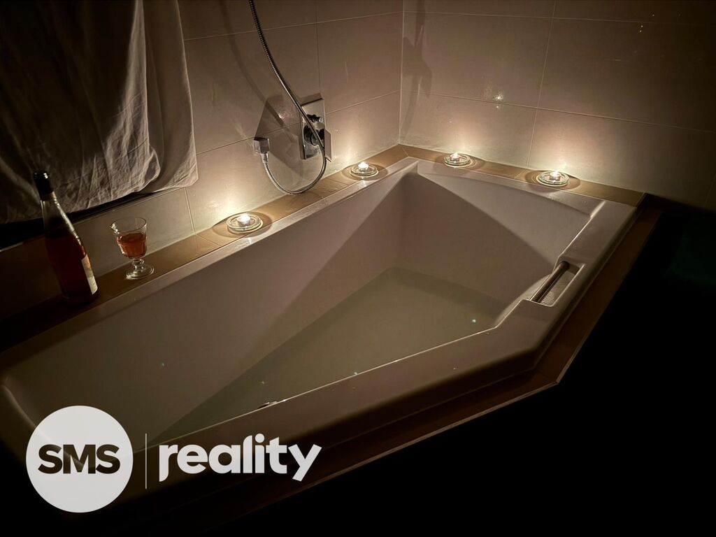 1. patro: chodba, tři samostatné pokoje (jeden s balkonem), koupelna s vanou, dvěma umyvadly, bidetem, pračkou a sušičkou, samostatné WC.