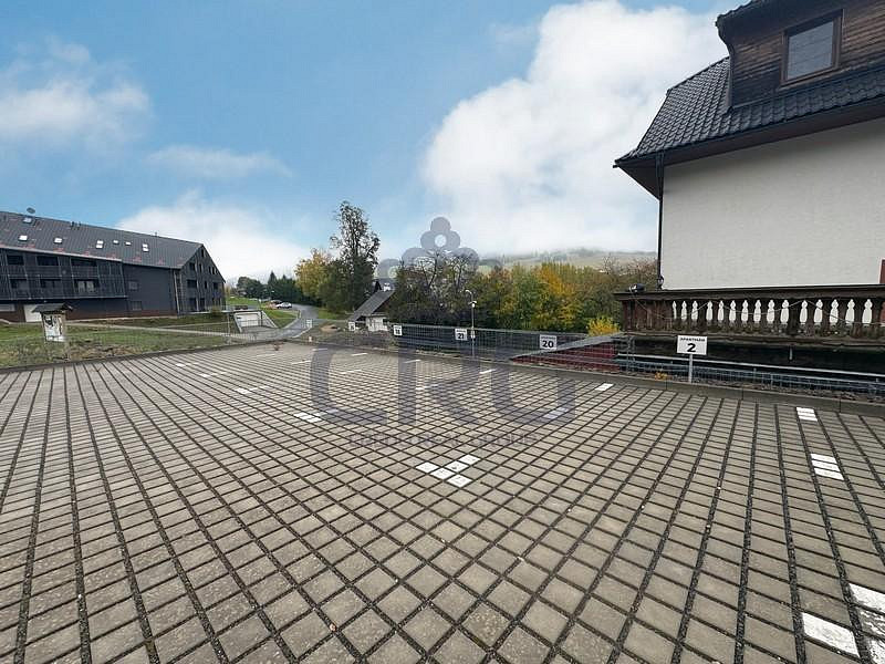 Ve třípodlažní budově, kde se apartmán nachází je mimo apartmány a sklepní kóje i lyžárna, která je určena pro obyvatele či nájemce tohoto domu. Budova, jak je víše uvedeno se nachází v bezprostřední blízkosti sjezdovky, kde bez problémů dojdete v lyžácích přímo k vleku. Samotná budova stojí na velkém uzavřeném pozemku, kde je přístup pouze závorou na dálkové ovládání, což zajišťuje mimo jiné i maximální bezpečnost osob v resortu se nacházejících. U budovy je také malý parčík, kde je ohniště s malou hrací plochou pro děti.