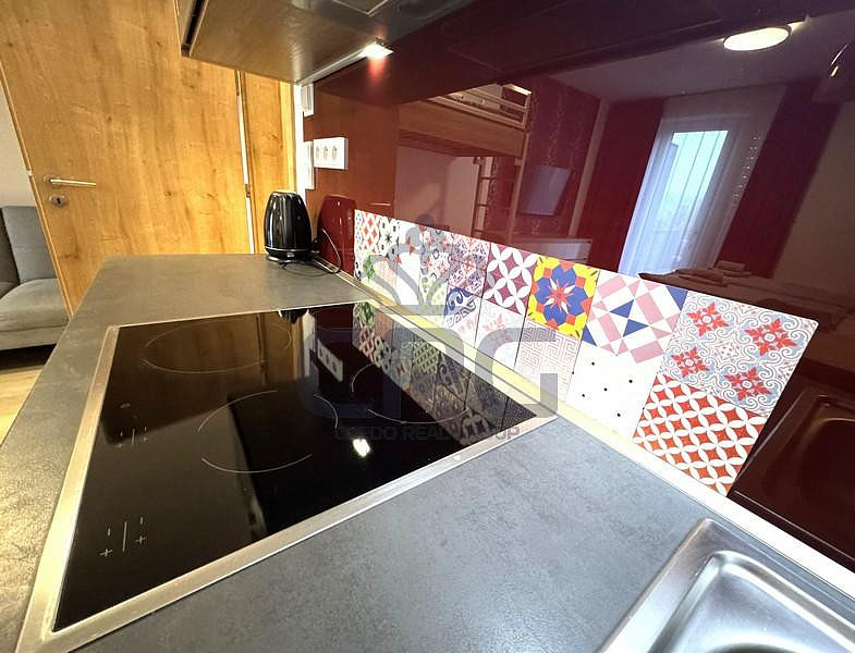 Vchodovými dveřmi vejdeme do vstupní chodby o výměře cca 4,3 m², ve které se nachází po celé její délce vestavná skříň na míru se zabudovaným bojlerem pro ohřev teplé vody. Hlavní obytná část o výměře cca 21,8 m² slouží jako kuchyně a obývací pokoj s ložnicí zároveň. Tato místnost je plně vybavena kuchyňskou linkou se čtyř plotýnkovou sklokeramickou deskou značky Elektrolux, digestoří, dřezem a lednicí s mrazákem. V pokoji je jídelní stůl se čtyřmi židlemi zajišťující komfortní stolování až čtyř osob. Nad stolem jsou dvě krásné designové lampy. V pokoji je dvojlůžko s nočními stolky a lampičkami, rozkládací gauč a nad gaučem se po žebříku dostaneme až do patrového jednolůžka. Naproti posteli je stěna s televizní skříňkou a televizí. Z obývacího pokoje je vstup na dominantu celého apartmánu, a to na terasu o výměře cca 21 m², která slouží k relaxaci a odpočinku. Na terase je venkovní posezení, a to stůl se čtyřmi židlemi. Nesmíme opomenout dřevěný prvek na terase, který je posuvný a slouží k možnému zatemnění obytné místnosti. Nesmíme opomenout nádherný výhled do okolní přírody a na sousedící hory. Poslední místností v bytě je koupelna o výměře cca 3,5 m², která disponuje velkým sprchovým koutem, WC, otopným žebříkem a umyvadlem se zrcadlem s umyvadlovou skříňkou. Koupelna je vybavena i vysoušečem vlasů.
