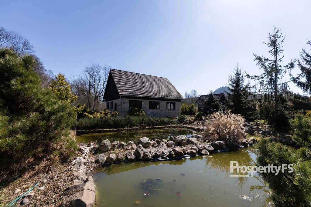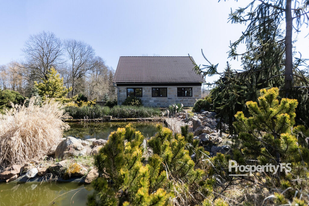 Okrasná zahrada je bezesporu jedním z nejvýraznějších prvků celé nemovitosti. Je pečlivě navržena i udržována a poskytuje nejen reprezentativní vzhled, ale také naprosté soukromí a prostor k relaxaci. Hlavní dominantou je jezírko s rybami, doplněné o další menší vodní plochy s lekníny, které dotvářejí klidnou a přírodní atmosféru. Jedno z jezírek je umístěno ve starém pískovcovém sklepě, čímž získává prostor unikátní charakter. Zahradu dále tvoří skalky, výrazné okrasné kameny, různé druhy trav, jehličnany, keře a vzrostlé dřeviny.