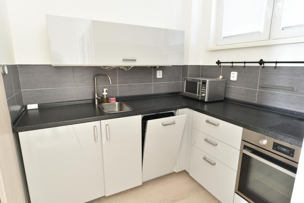 Byt prošel nadstandardní rekonstrukcí a nabízí komfortní a klidné bydlení ve vysokém standardu. Součástí vybavení je nová kuchyňská linka se zabudovanými spotřebiči lednicí, horkovzdušnou troubou, sklokeramickou varnou deskou a myčkou nádobí. Moderní koupelna se sprchovým koutem je doplněna o pračku. Byt je částečně zařízený a připravený k okamžitému nastěhování.