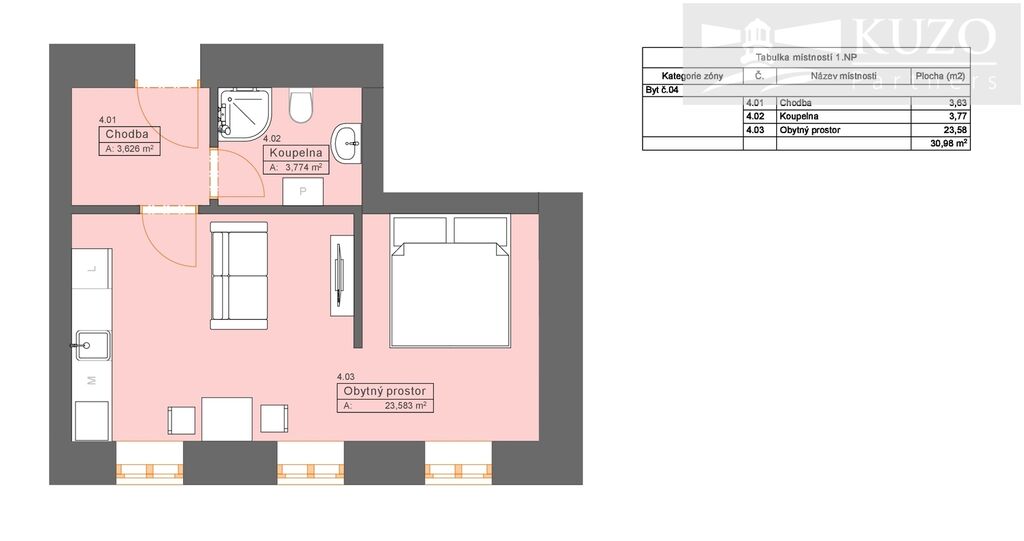 • Byt o výměře 31 m² – cena 3.162.000 Kč
