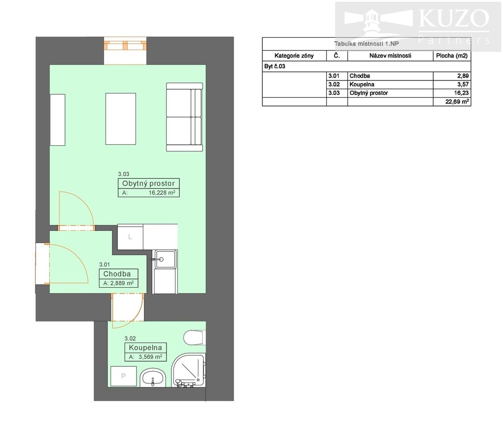 • Byt o výměře 22 m² – cena 2.244.000 Kč