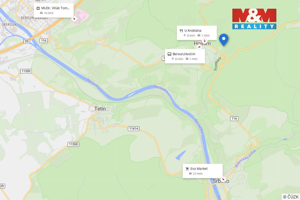 Nabízíme prodej louky o celkové výměře 2017 m² v obci Hostim u města Beroun. K pozemku vede obecní komunikace, dle územního plánu zde není možné stavět  a nenacházejí se žádné ani žádné sítě. Stávající majitel uvažuje o možnosti umístit na pozemek mobilní dům.