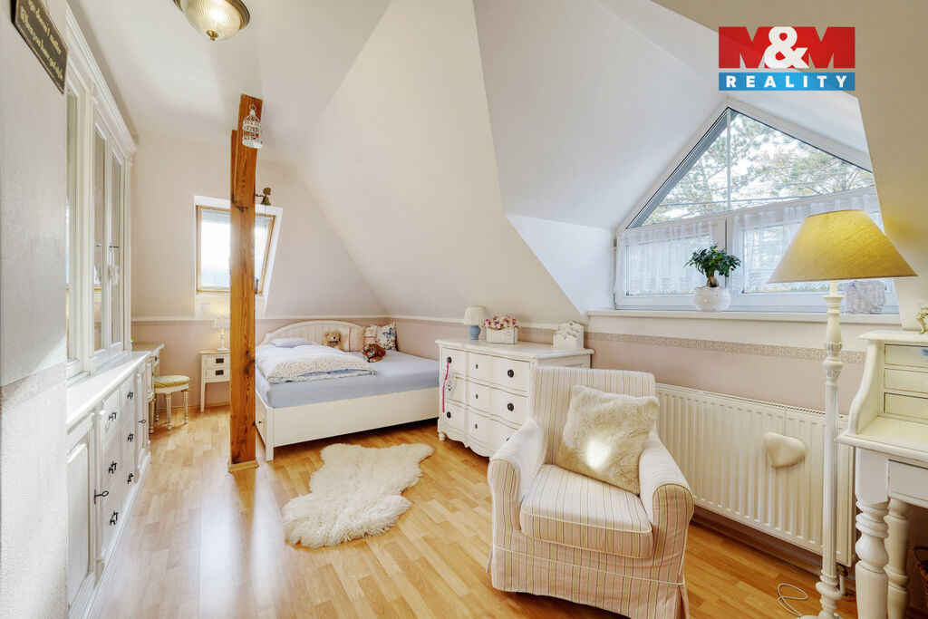 Hledáte místo pro komfortní život celé Vaší rodiny v tom nejvyšším standardu? Máme to pravé. Přinášíme Vám možnost koupi vícegeneračního RD v perfektním stavu s udržovaným pozemkem (887m²), který poskytne dostatek soukromí pro relax i případné zahradničení. Najdete zde majestátní přízemí se salónem, obývacím pokojem s kuchyňským koutem, koupelnu, WC, komoru aj. V horním patře jsou pak samostatné pokoje, v nádherném designu. Další možnosti využití má samostatná část domu (s vlastním vchodem, kde najdeme hlavní pokoj, vedlejší místnost, koupelnu s WC), což může být využito buď pro část rodiny nebo klidně pro své podnikání (ordinace, kancelář, apod.). Dále zde samozřejmě je i zázemí pro Vaše hobby ve formě zahradního domku. Nemovitost je vytápěna plynovými kotli, částečně podlahovým topením, ohřev vody bojlery. Je samozřejmě napojena na vodovod (pro užitkovou vodu jsou zde také dvě studny) a na kanalizaci. Centrum klidné obce s krátkým dojezdem do Prahy