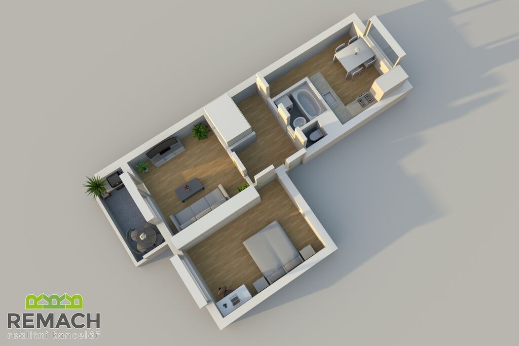 Zrekonstruovaný byt o dispozici 2+1 s rozlohou 56,8 m2, s balkonem o rozloze 5 m2 a velmi prostorným sklepem o rozloze 16 m2, umístění v lokalitě se spoustou zeleně, třemi dětskými hřišti a venkovním sportovištěm, umístěným ihned u domu.