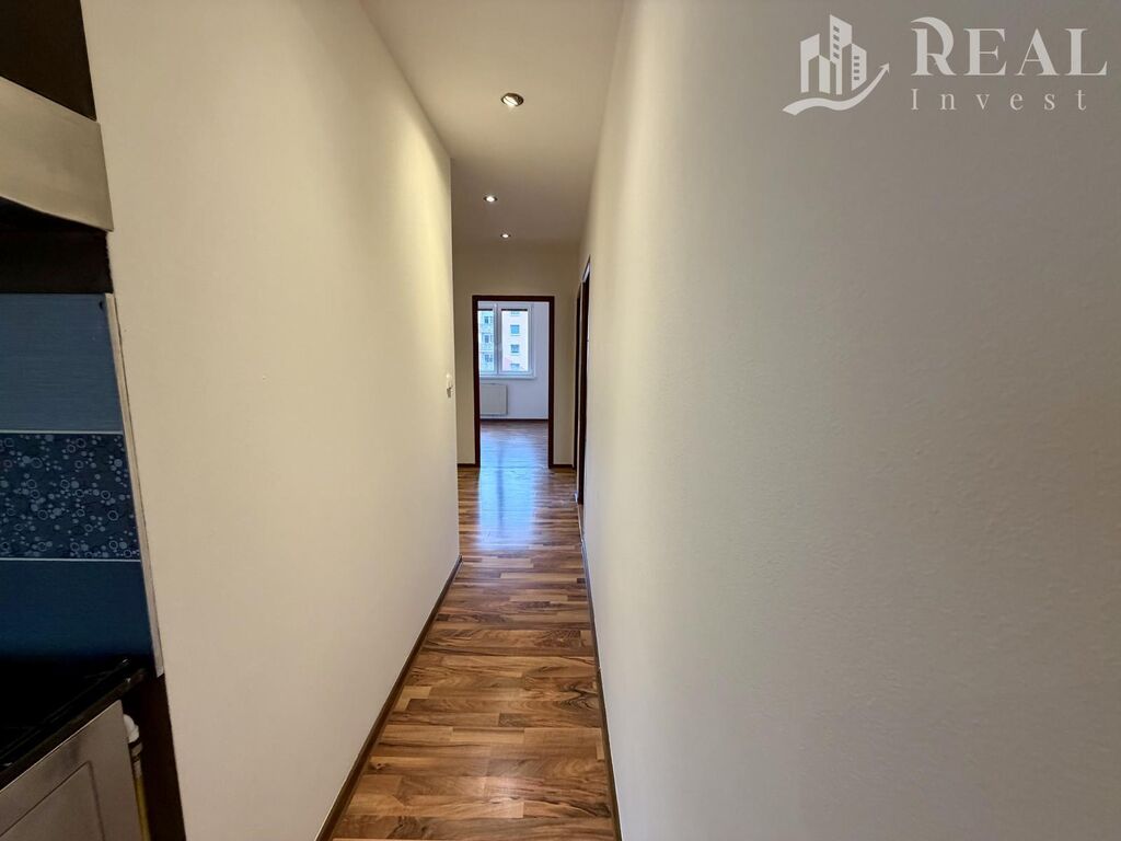Byt má prostornou vstupní chodbu, zděné jádro koupelnu a toaletu, velký obývací pokoj, pokoj s balkonem a další samostatný pokoj. Prostornou kuchyň s rohovou kuchyňskou linkou. V každém pokoji jsou v oknech žaluzie. K bytu náleží sklepní koje.