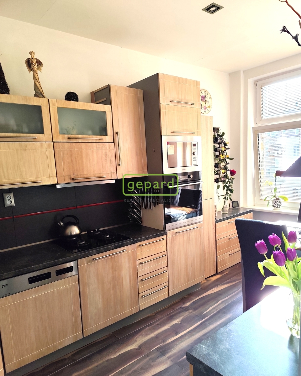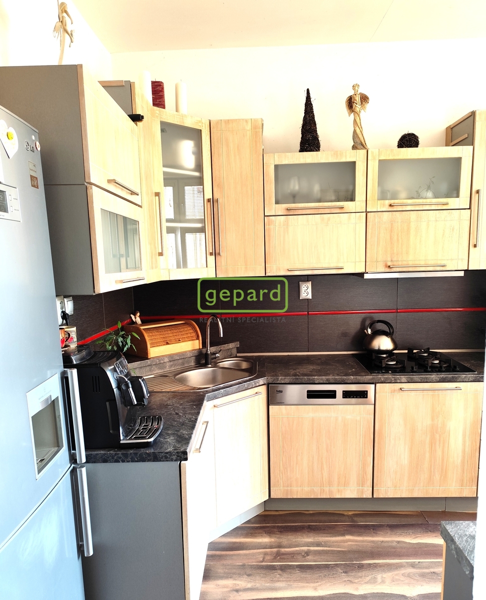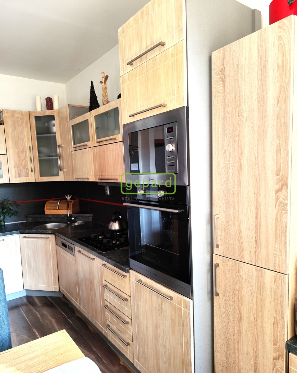 Byt se pronajímá bez vybavení, zůstává pouze kuchyňská linka s vestavěnými spotřebiči.