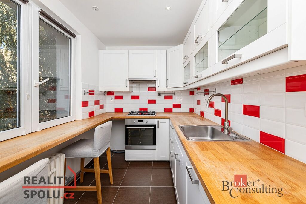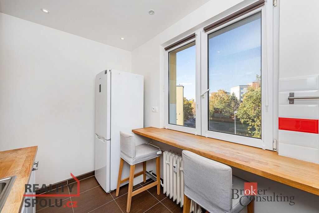 Byt o ploše 54 m² se nachází ve 4. patře udržovaného panelového domu, jen 5 minut chůze od stanice metra Petřiny. Díky oknům orientovaným na dvě světové strany je interiér příjemně světlý po celý den.