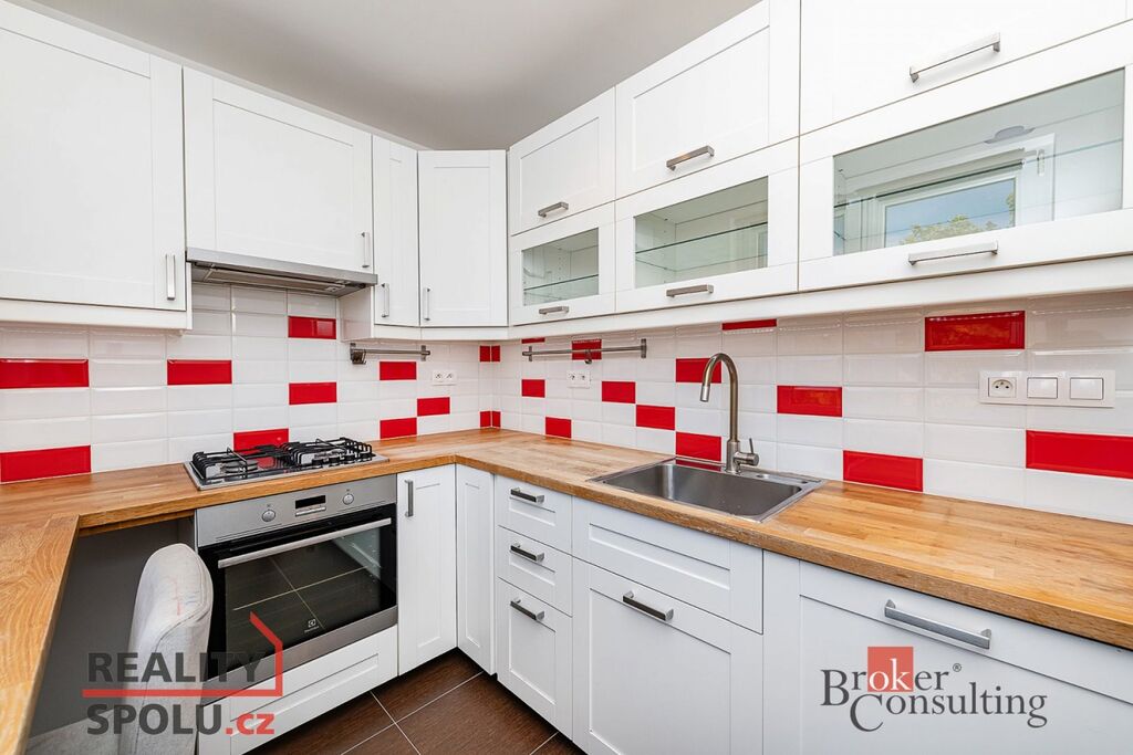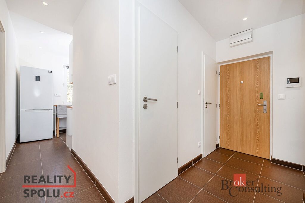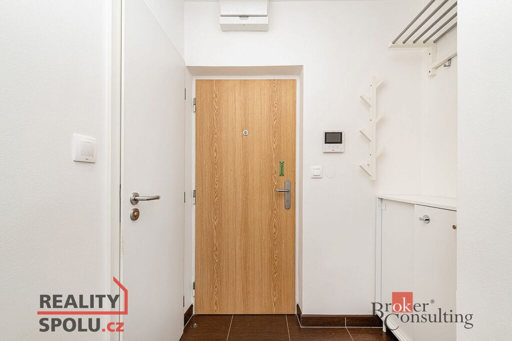 Byt se pronajímá nezařízený, avšak v kuchyni je lednice, myčka a plynový sporák. V předsíni zůstává botník a vestavěné skříně, výhodou je komunikační systém s kamerou u vstupních dveří do domu– včetně možnosti ovládání přes internet pomocí aplikace.