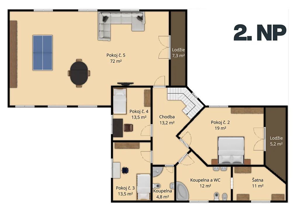•Pokoj č.5 má také vlastní lodžii (7,3 m²)