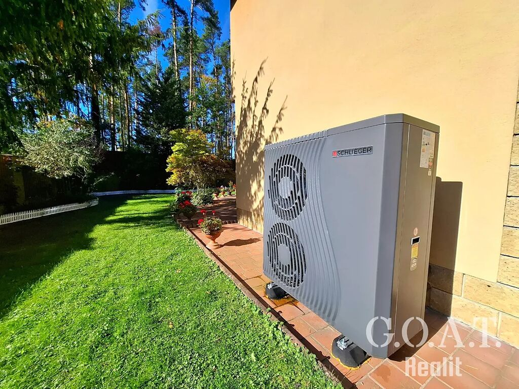 Dům je vybaven fotovoltaikou, tepelným čerpadlem a klimatizací.