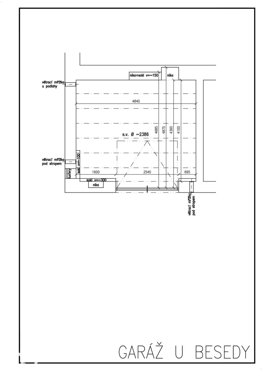 Délka 4,68m (použitelná délka pro zaparkování auta, měřeno od vrat po výklenek)