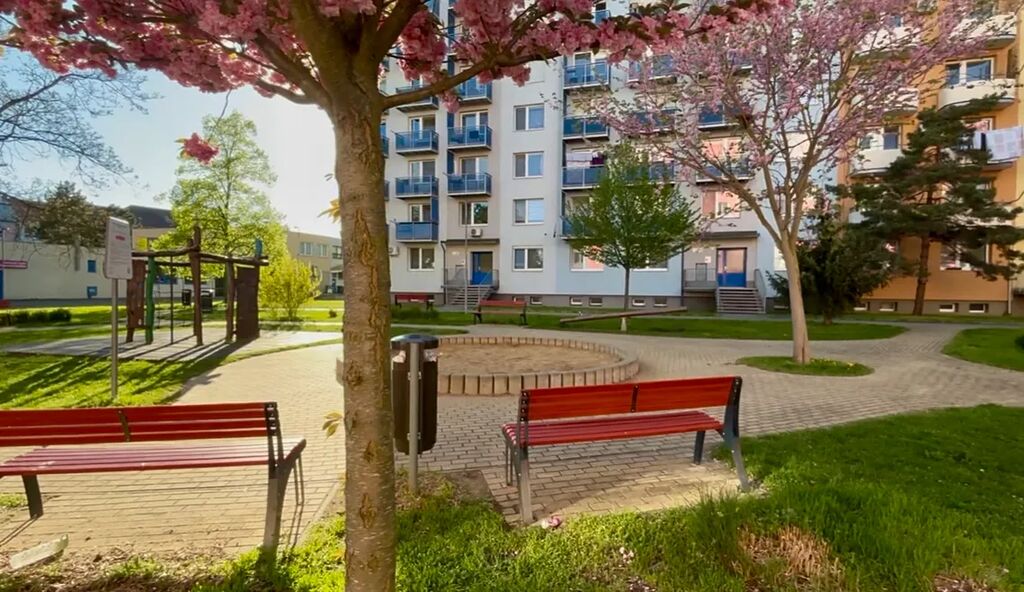 • Klidné prostředí s parkem a dětským hřištěm přímo u domu