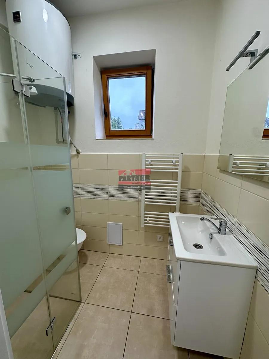 Dispozice: kuchyně, pokoj, koupelna se sprchovým koutem a toaletou, chodba. Na podlahách lino. K bytu náleží sklep a možnost využívat společnou zahradu.