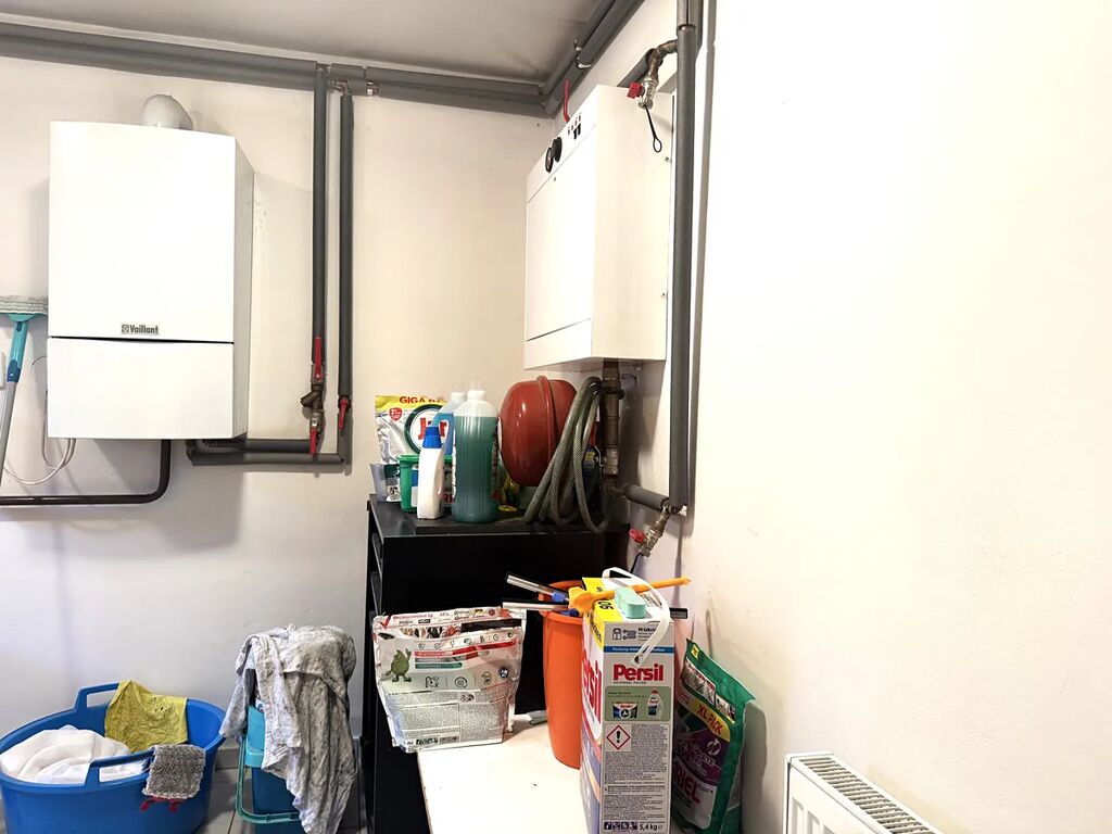 • Prostorná technická místnost s plynovým kotlem a sekundárním elektrickým kotlem.