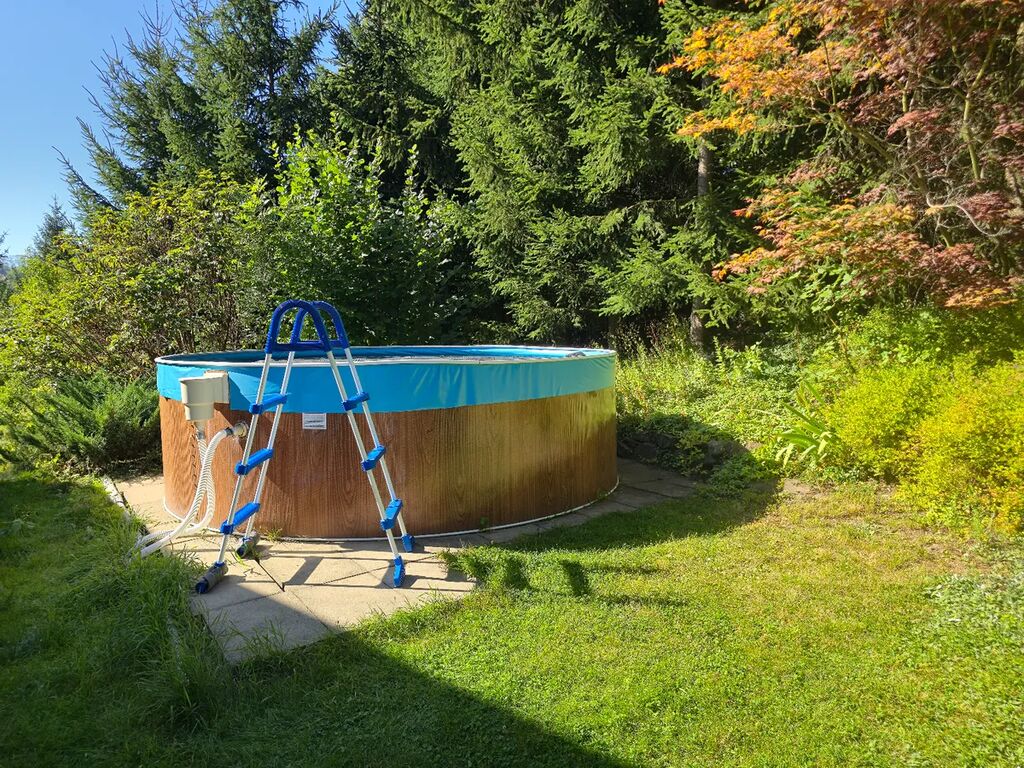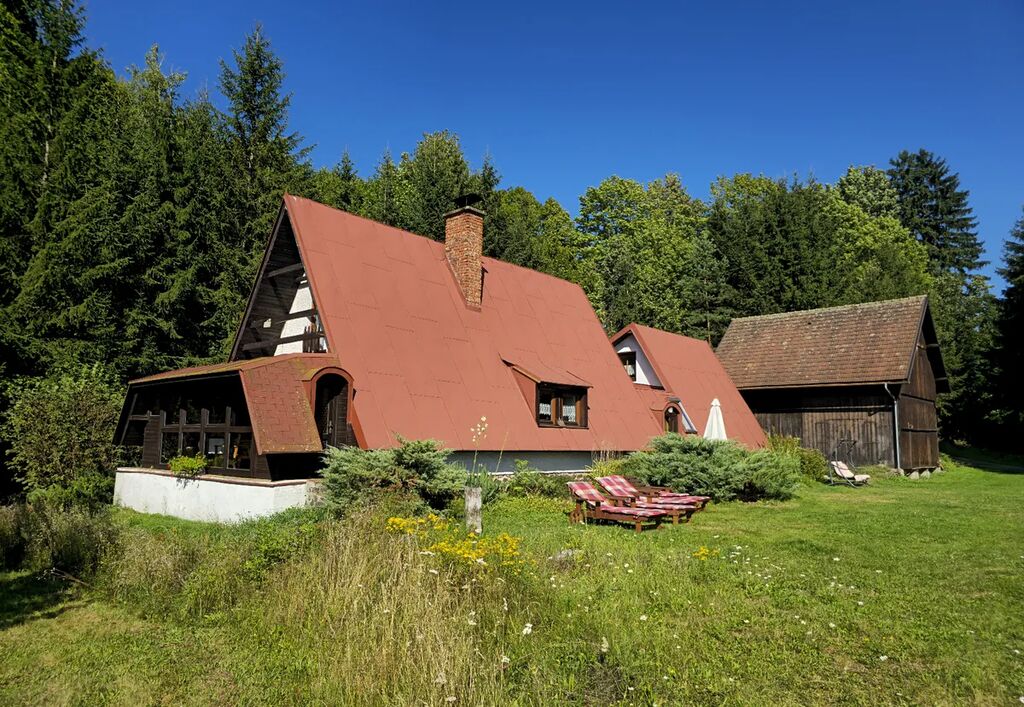 Exkluzivně Vám nabízím ke koupi kompletně zařízenou chalupu /rodinný dům s číslem popisným/ s dispozicí 5+1 se zimní zahradou a stodolou o celkové užitné ploše 236 m2, situovanou na překrásném a velice klidném pozemku o celkové výměře 5776 m2 s vlastní příjezdovou asfaltovou cestou, v malebné části obci Háje nad Jizerou, část Loukov. Součástí pozemku je tzv. Tvrziště Loukov, nacházející se na pahorku Karcák, nazývaná Hrádek. V současné době má dům 3 ložnice s 10 lůžky a v současné době je převážně využíván k celoročnímu pronájmu s ročním výnosem cca 500.000 Kč. Vytápění domu zajištuje tepelné čerpadlo vzduch – voda s rozvodem do soustavy radiátorů a dále klimatizační jednotka, která je umístěna v pravé části domu. V jarních a podzimních dnech si lze tepelnou pohodu zpříjemnit krbem. Celý dům je napojen na obecní vodovod, odpad sveden do septiku, elektřina 230/400 V, internet prostřednictvím pevné tel. linky. Součástí domu jsou 2 kuchyně, 2 koupelny s toaletami, v pravé části domu je k dispozici infrasauna pro 4 osoby. K domu dále přináleží stodola, kde je sklad dřeva a dále samostatná místnost se stolem na stolní tenis a šipkami, venku je k dispozici nadzemní bazén o průměru 3,6 m s hloubkou 1,2 m. Pro pohodu, relaxaci a sport lze využívat 4 relaxační lehátka, houpačku, venkovní posezení, volejbalové hřiště, basketbalový koš a otevřené ohniště. V obci se nachází základní škola, mateřská škola, obchod, obecní úřad, dopravní dostupnost do obce Háje nad Jizerou a Jilemnice zajištěna autobusem linky č. 962. V okruhu do 16 km se nachází několik známých sjezdových středisek /Vítkovice, Vrchlabí, Herlíkovice a Benecko, Špindlerův mlýn a Rokytnice nad Jizerou do 30 minut jízdy od domu/. Více informací nebo prohlídku si domluvte telefonicky.