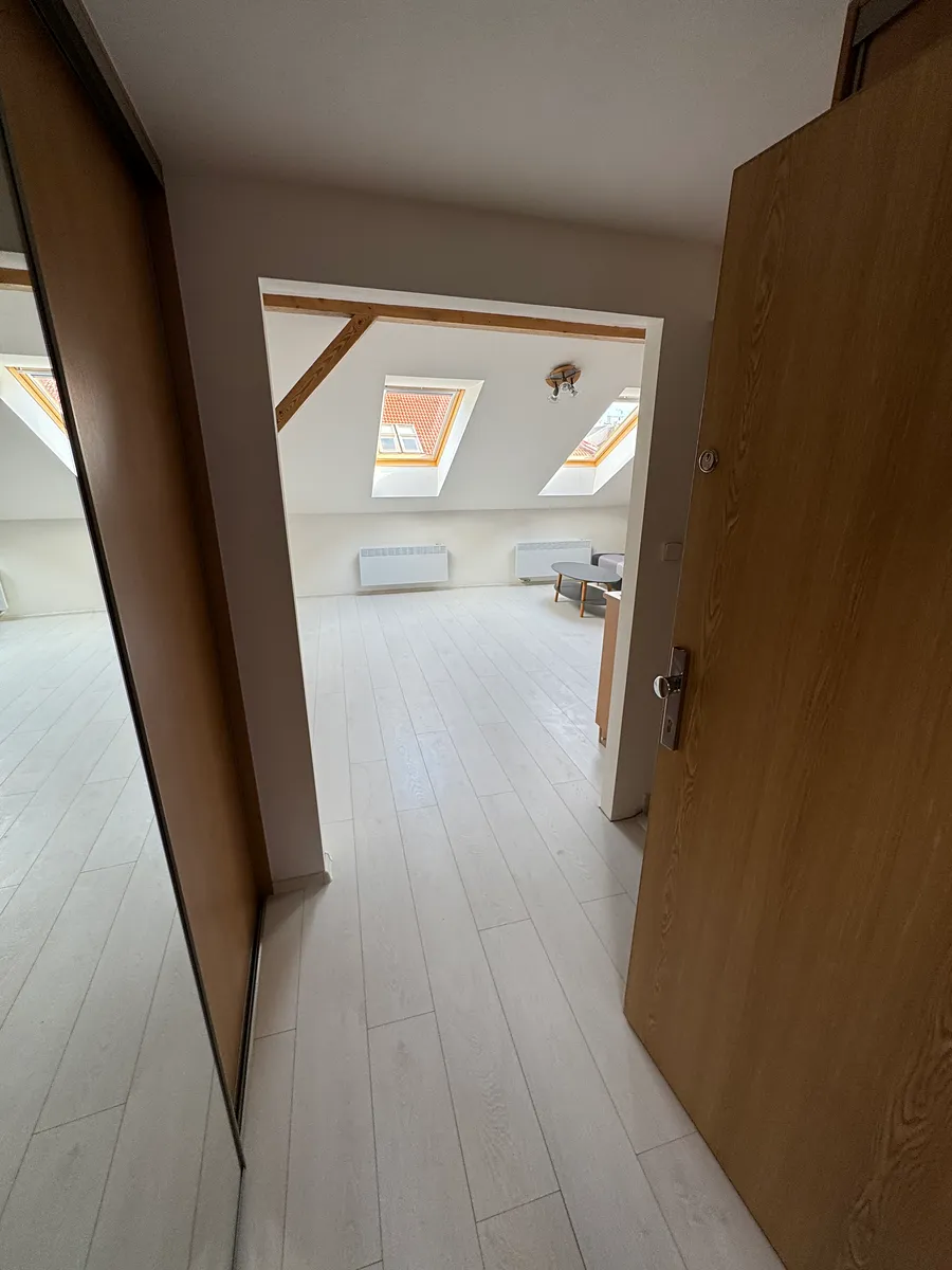 Byt se nachází ve čtvrtém patře a nabízí užitnou plochu o rozloze 32 m² + zabudované patro na spaní, které činí cca 10 m2. Díky rekonstrukci je interiér bytu ve velmi dobrém stavu, což slibuje komfortní a bezproblémové bydlení. Podkrovní charakter bytu dodává jedinečnou atmosféru.