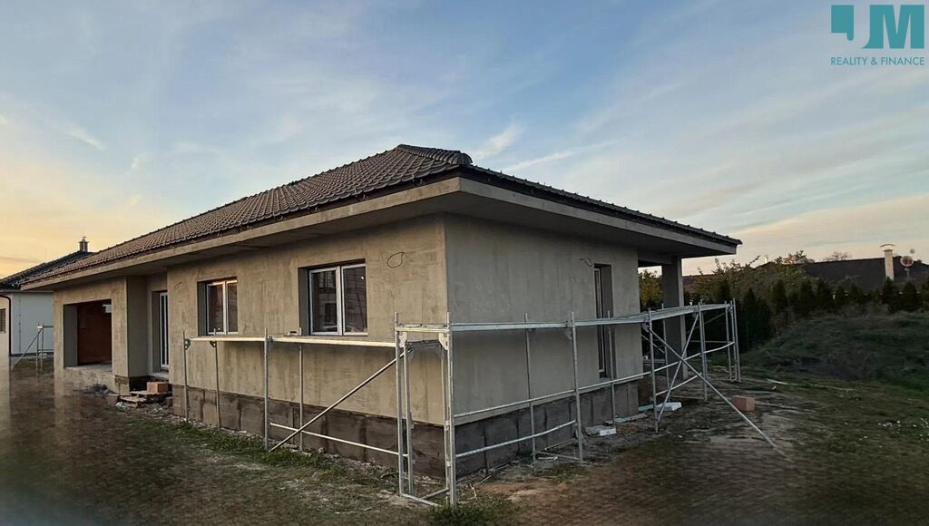 Rád Vám zprostředkuji prodej krásné prostorné novostavby v klidné části Hrotovic (10 minut od Dukovan). V domě naleznete ložnici s šatnou, pracovnu, dva pokoje, prostorný obývací pokoj propojený s kuchyní a vstupem na zastřešenou terasu. Z kuchyně je vstup do komory. V domě je také koupelna s prostorem pro vanu, sprchový kout a toaletu, dále v domě naleznete samostatnou toaletu. Vedle vstupu do domu se nachází garáž pro dvě auta o rozloze 49 m². Za garáží je technická místnost. Zdi domu tvoří Heluz, střecha Tondach. Okna, dveře a posuvné dveře jsou z plastu. V domě bude kompletní rozvod elektriky (měď), příprava na předokenní žaluzie a také příprava pro fotovoltaiku a vallbox. Součástí je podlahové topení v celém domě, tepelné čerpadlo De Ditrich Alezio v200 r32.