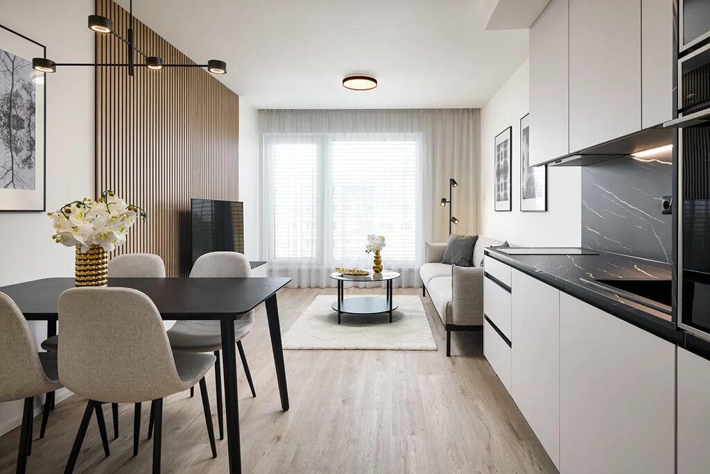 Nabízíme Vám jedinečnou nabídku pronájmu moderního bytu 2+kk nacházející se v rezidenčním komplexu PAPRSEK – přímo u stanice metra B – Stodůlky. Tento byt je umístěn v 8. NP a s užitnou plochou bytu 47,9 m2 - je ideální pro pár nebo jednotlivce, kteří ocení luxusní a moderní design.